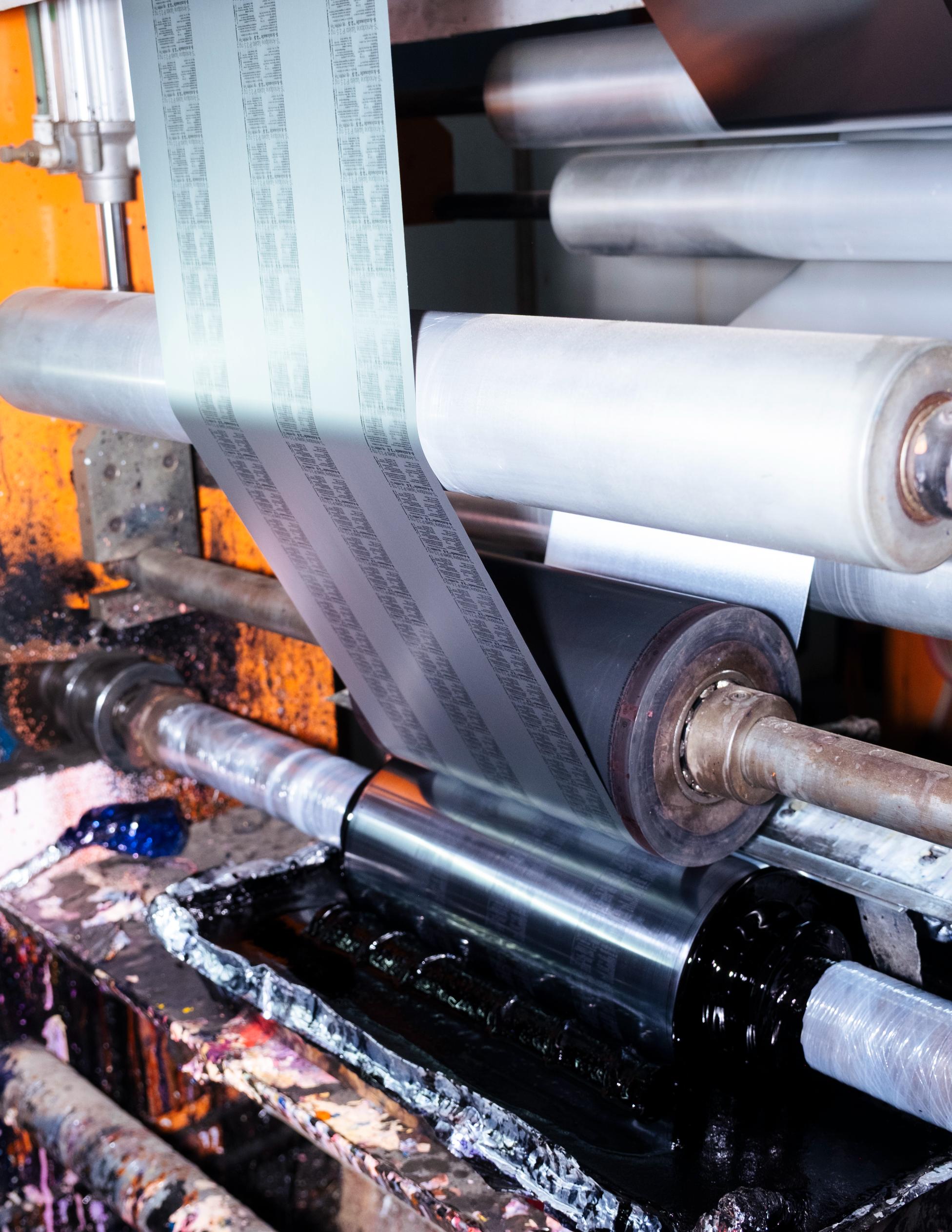 Custom printing with full compliance markings, branding and batch information – produced on in-house multi-color gravure printing machines.